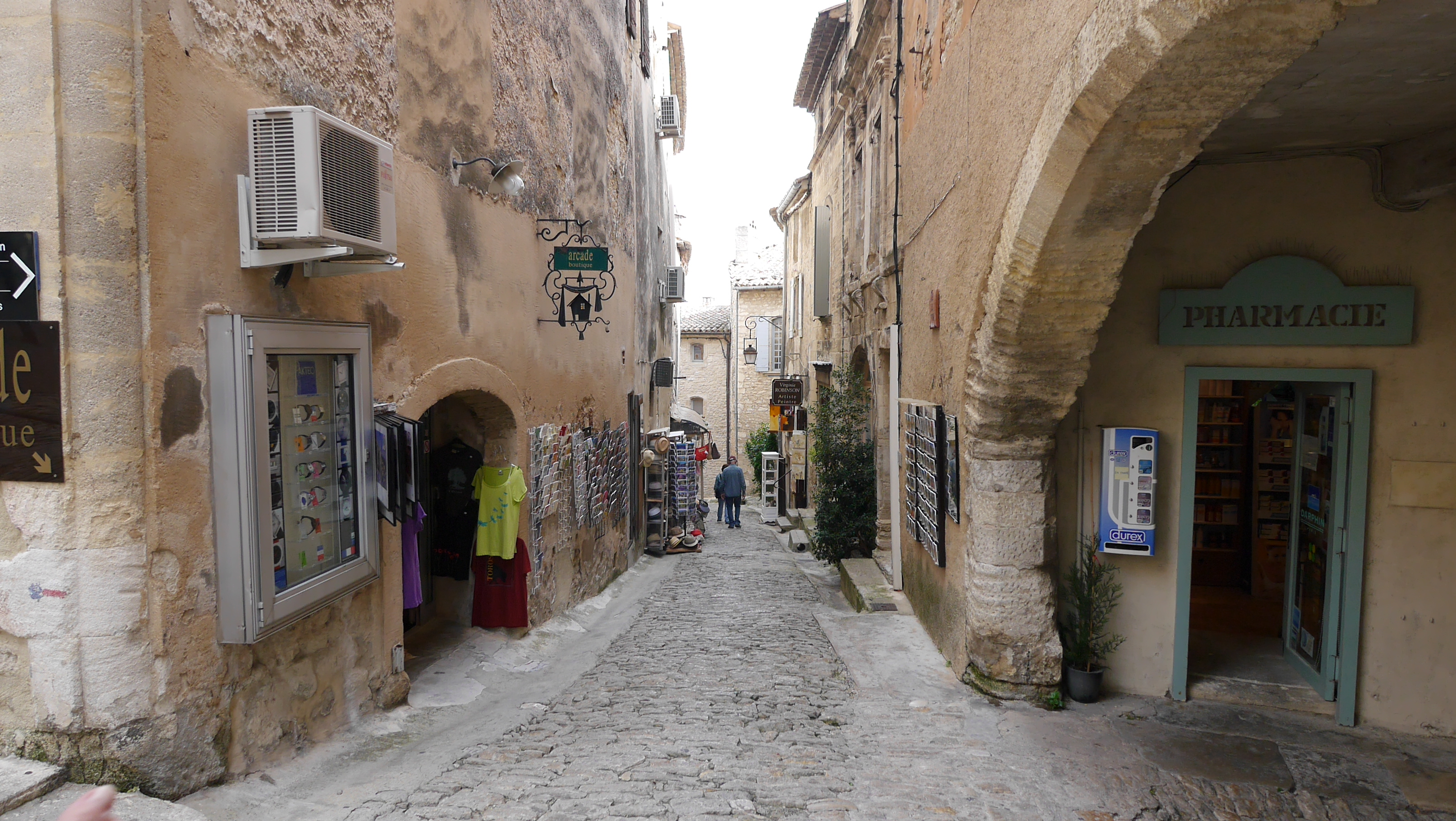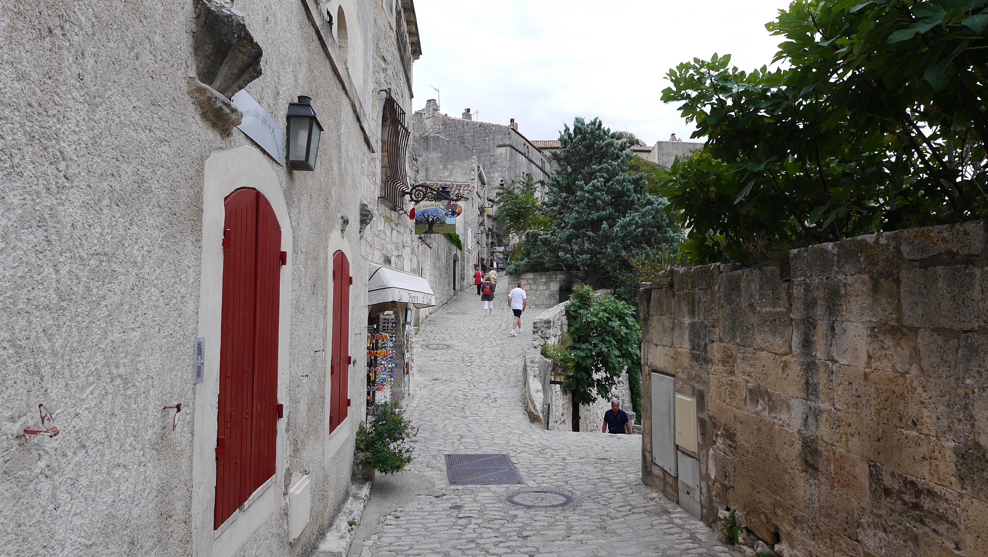 3番目は「ボー村」である。“ボー”はプロヴァンス語で“岩だらけの尾根”という意味らしいが、近世にアルミニウムの原料となるボーキサイトが近くで発見されてからその語源となったという話の方が有名かもしれない。またカトリック教徒が多いフランスに在って、プロテスタントの牙城としてここの城が利用されたが、仏の絶対王政の基礎を築いた宰相リシュリューの手で落城されたとガイドの説明があった。僕が今回3週間余り滞在したパリのアパートが、リシュリュー翼があるルーブル美術館に通じる“リシュリュー通り”というところにあったから、ガイドのその話をよく覚えている。現在の村はご覧のような石造り家屋で、静かなプロヴァンスの生活が営まれているのであろうか。僕は気に入って裏道に入り込んだら迷子になりそうで、バスの集合時間が気に掛かって早々に引き揚げた。何時かこのような雰囲気のある村をゆっくり散歩したい。アルフレードの父親ジェルモンが今にも出てきそうであった。